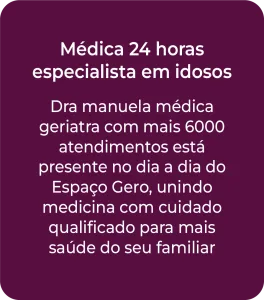 No Espaço Gero viver em um novo lar vai muito além do cuidado, é sobre encontrar um lugar onde o carinho e a ciência se unem para transformar vidas. Aqui cada detalhe é pensado para proporcionar bem-estar e saúde, com uma equipe multidisciplinar especializada e um calendário cuidadosamente planejado pela Dra. Manuela Santos, trabalhamos para que cada dia seja vivido com mais vitalidade e alegria, e acima de tudo oferecemos o maior antídoto para solidão.